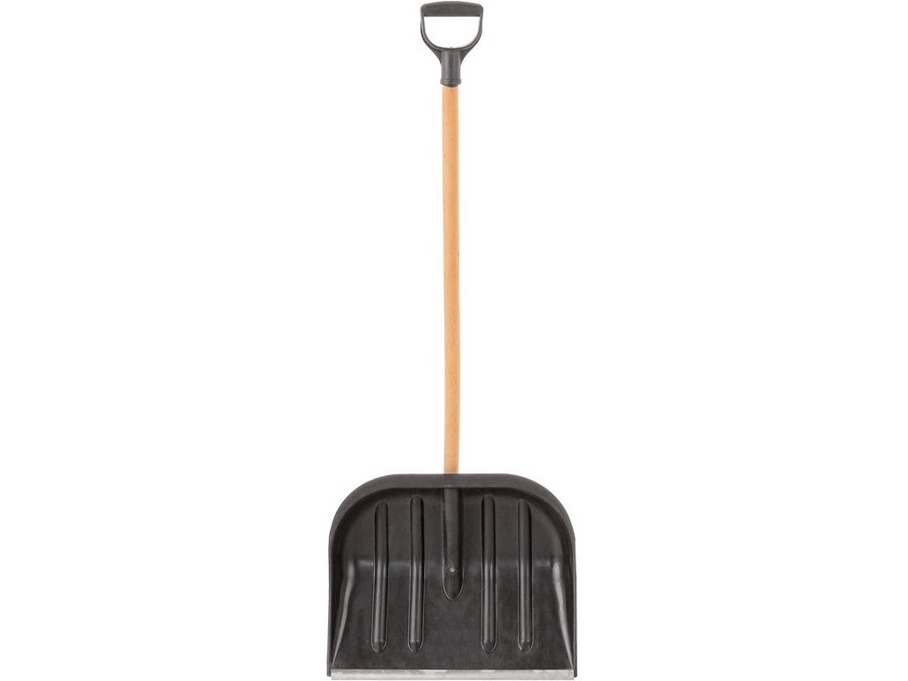 Plastové hrablo na sníh, s hliníkovou lištou a násadou.