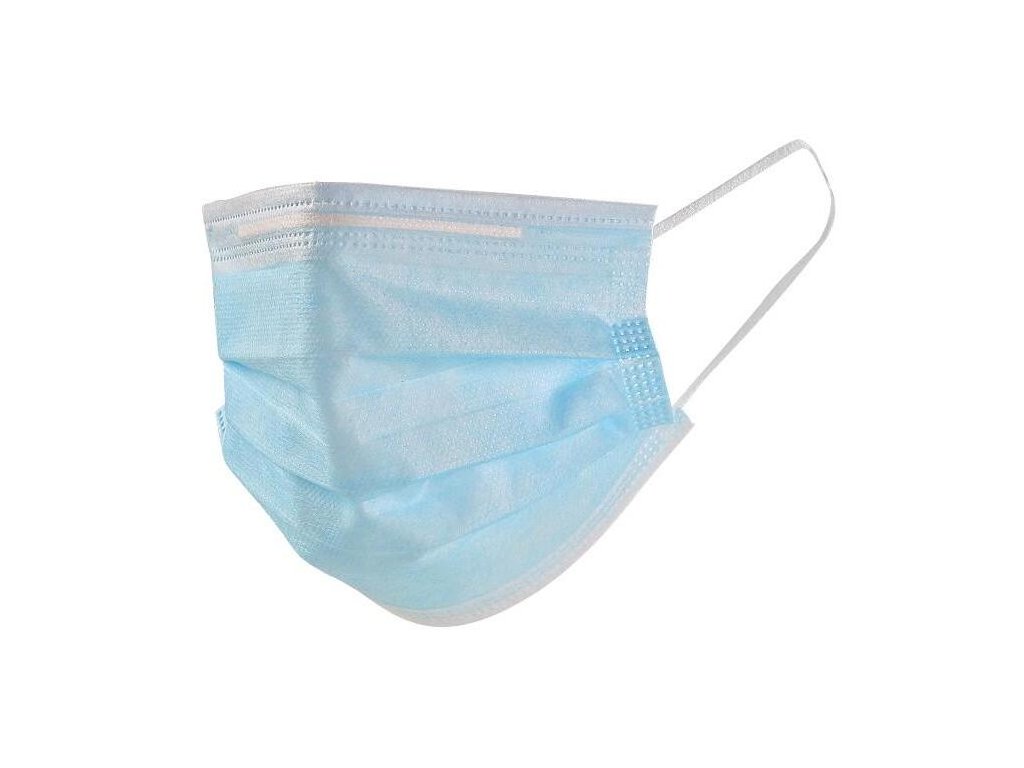 Jednorázová zdravotnická rouška z lehké třívrstvé textílie v modré barvě