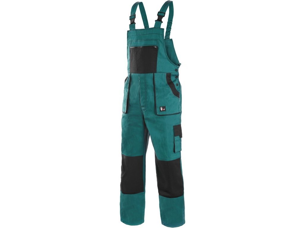 Pánské kalhoty s náprsenkou, zateplené, zdvojená kolena, náprsní kapsa na zip, boční kapsy na metr a na mobil, pas v zadní části do gumy.