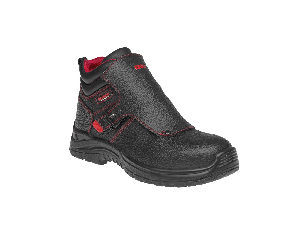 Specializovaná obuv pro svářeče opatřená přezkou pro rychlé vyzutí