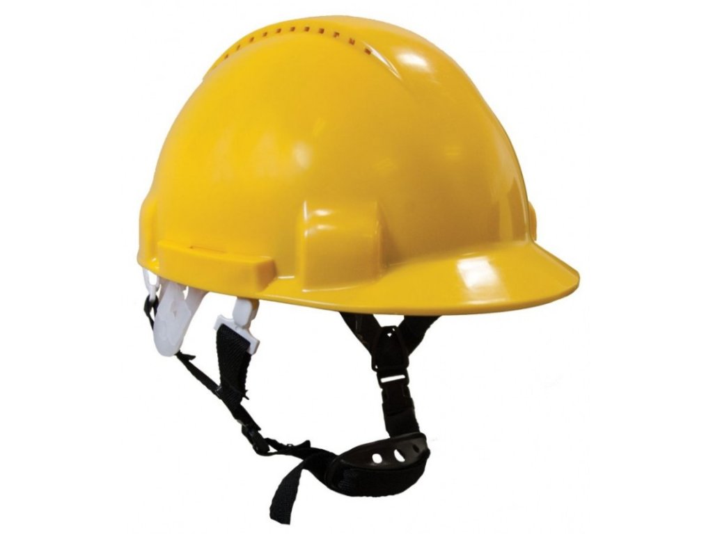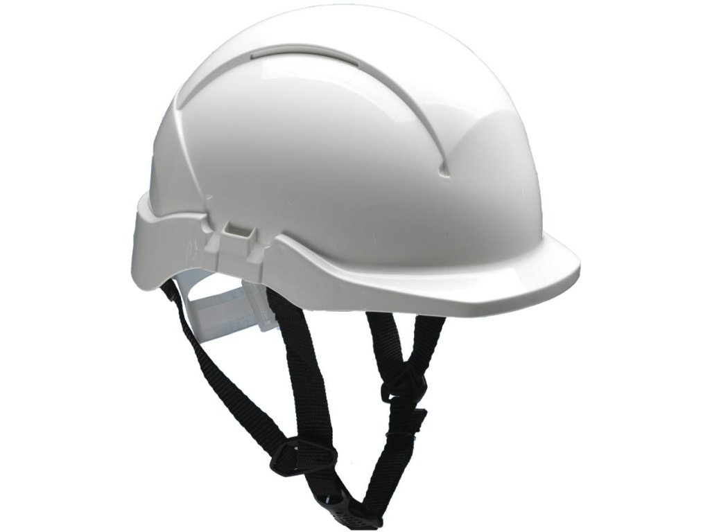 Ventilovaná helma, přizpůsobená pro práci ve výškách. Vysoce komfortní polyethylenová skořepina, šestibodový postroj a nastavení spony. Dodává se s potním proužkem a 4bodovým podbradním páskem (styl Y)
