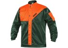 Pánská souprava proti pořezu, blůza s krytým zapínáním, náprsní kapsy, kalhoty s náprsenkou, protipořezová vložka, protiklíšťová úprava.
